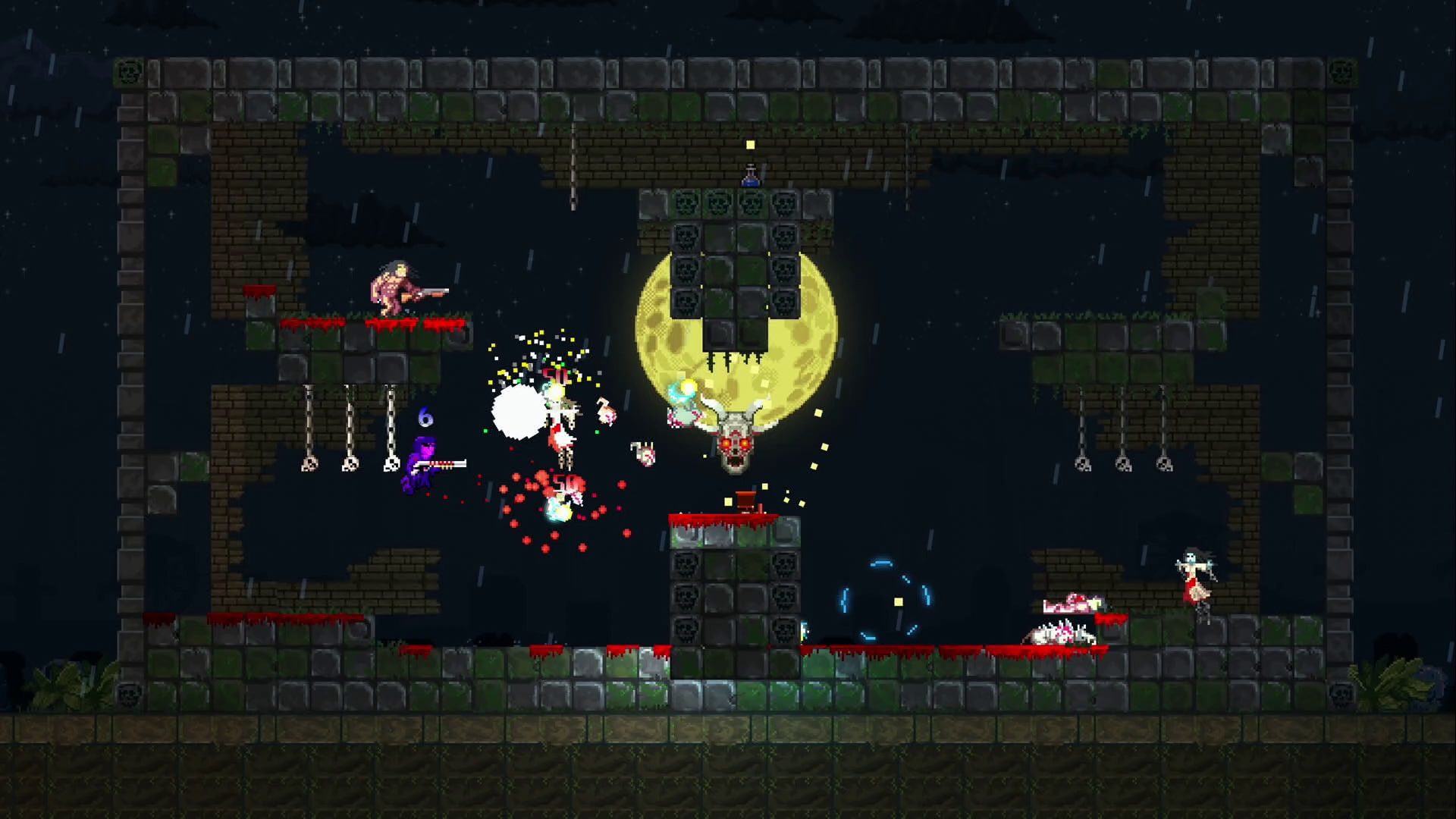 Праздник для диванных воинов! Хватайте мощную пушку и крепкий щит: вас ждут 9 локальных режимов для 4 игроков (а отряды из 1-2 человек — также режим волн), 4 мира и 40 арен. Крови будет много!