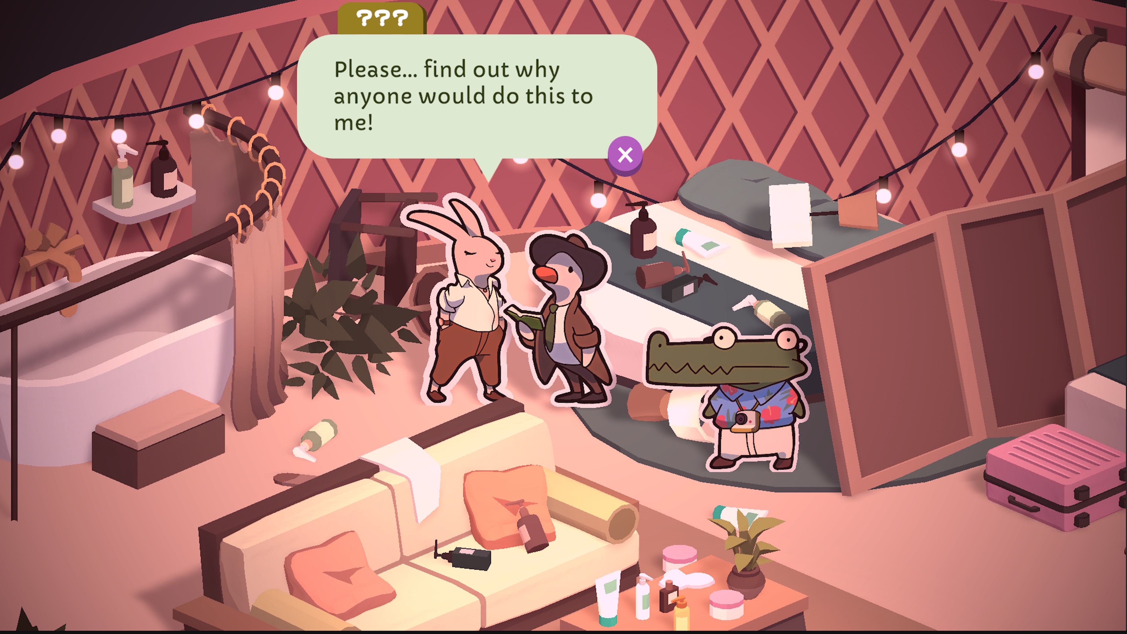 К досаде утиного детектива, к нему присоединяется новый напарник в раскрытии преступлений. Работайте вместе, чтобы разгадать истину и обглодать крохи правосудия!