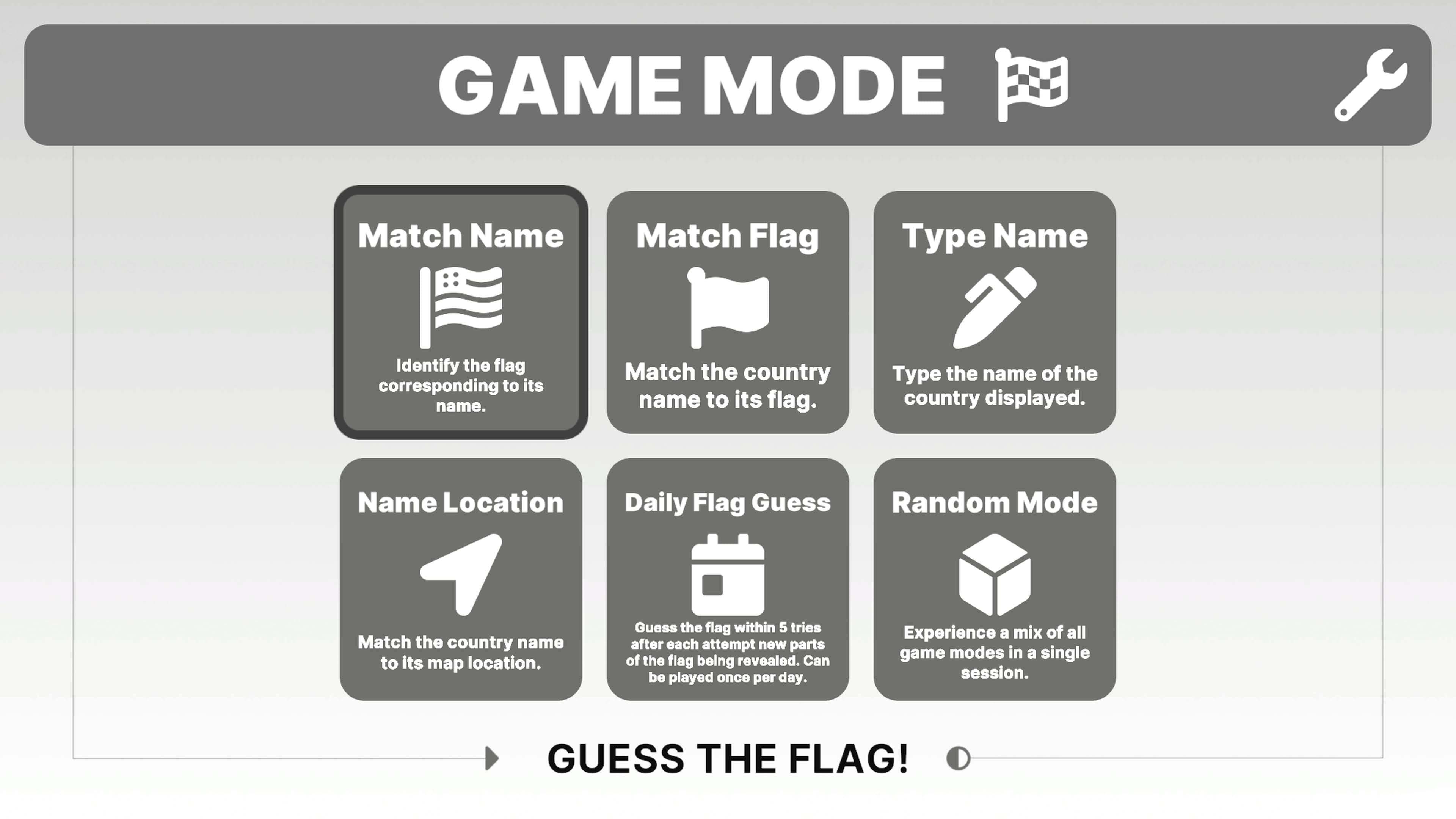 Проверьте свои знания о 255 странах, островах и международных организациях в 6 увлекательных режимах. Проверьте свою память, сопоставляя флаг с названием страны, или сыграйте в обратный режим. Если вы уже эксперт в знании флагов, попробуйте режим, в котором вам придется самостоятельно написать название страны. Почувствуйте острые ощущения, сопоставляя местоположение и страну, и для разнообразия погрузитесь в непредсказуемый случайный режим, объединяющий все испытания.