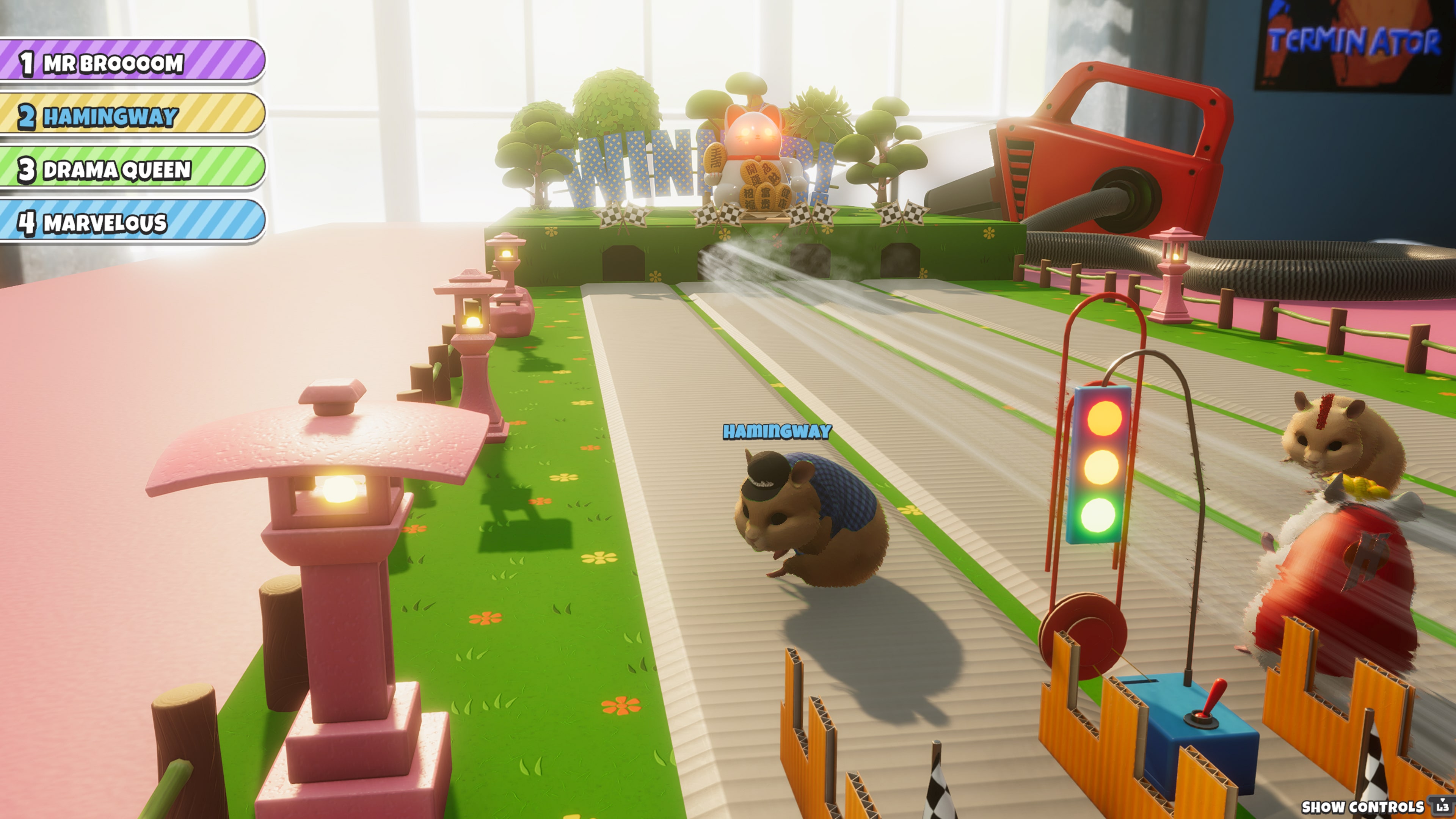 В этом захватывающем игровом режиме ваш хомяк превращается в лучшего гонщика, пытающегося добраться до финиша, отмеченного знаменитыми красными и зелеными огнями. Это не просто гонка; это испытание скорости, ловкости и идеального расчета времени!