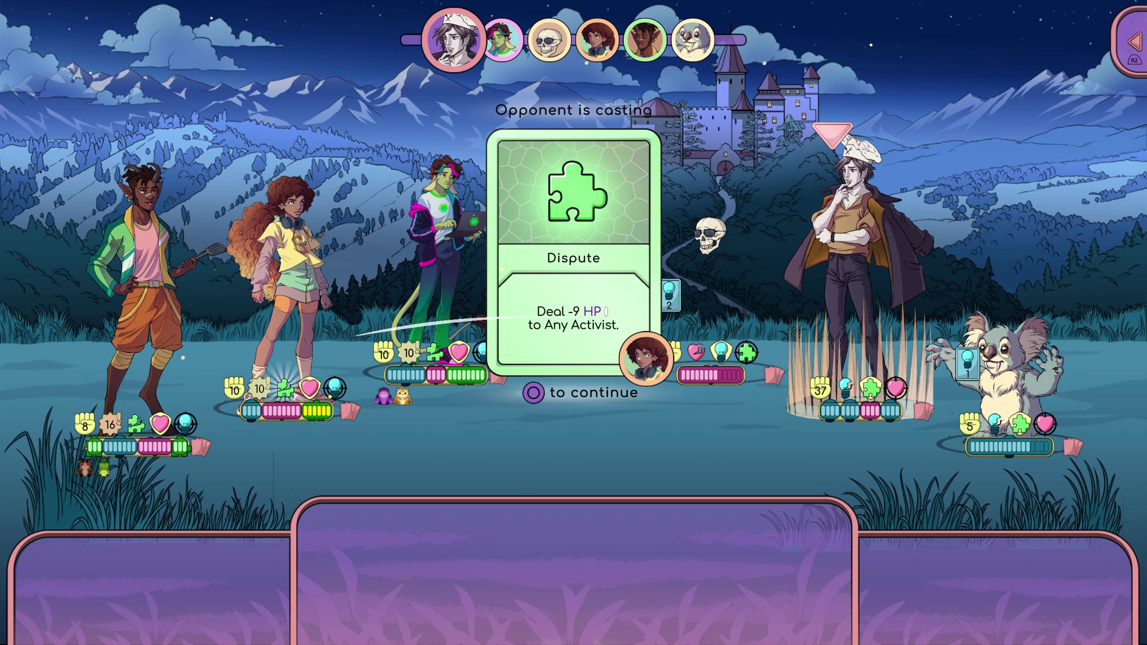 Составьте команду из семи доступных персонажей (выберите Луку, если вам по нраву понурый эмо-бой, или Райли, если цените отпадные танцевальные движения).