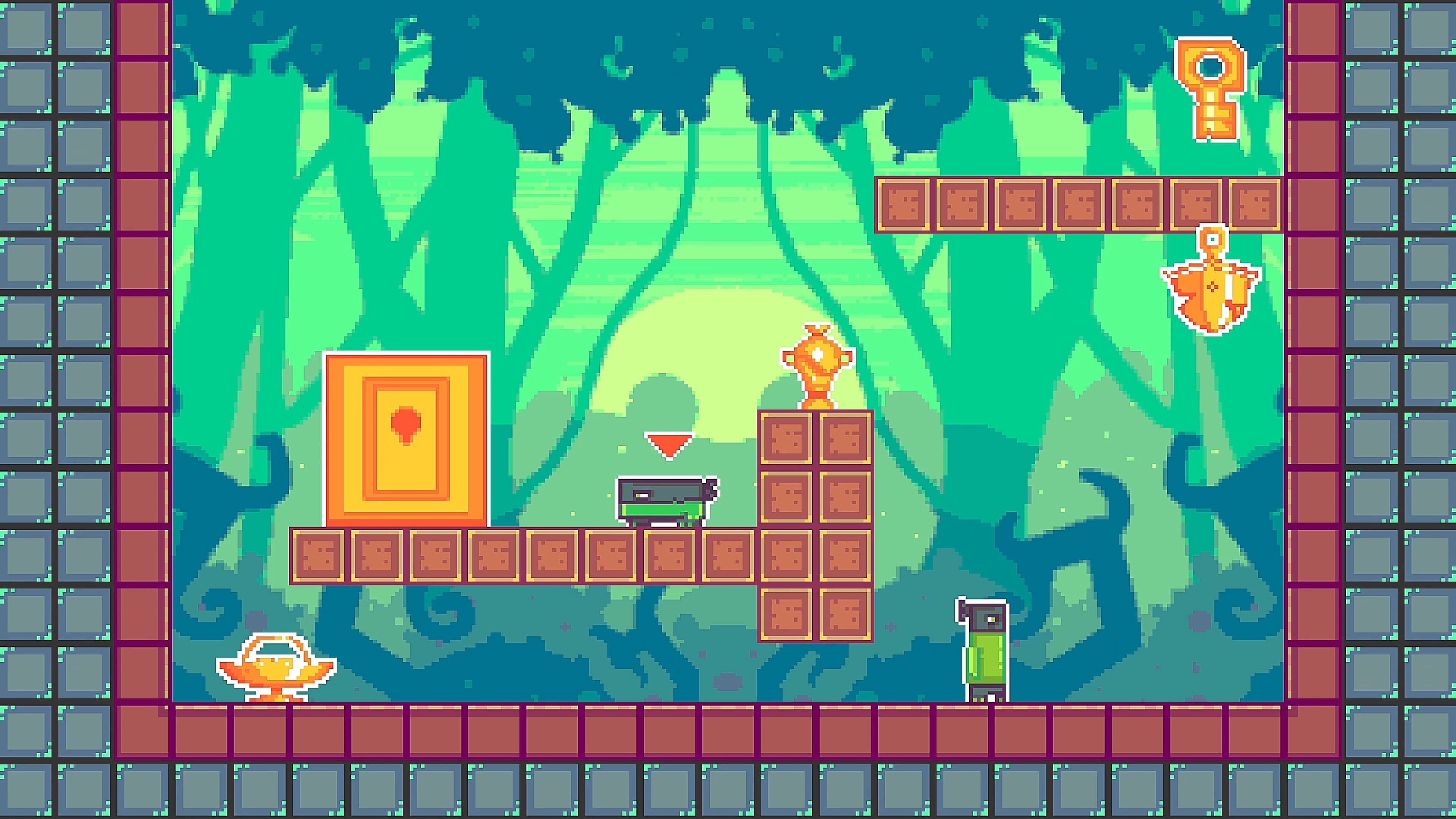 Объединитесь с двумя зелёнокожими братьями-грабителями в поисках сверкающего золота. Переключайтесь между высоким, долговязым вором, чтобы добираться до возвышенных платформ, и его низким, коренастым напарником, чтобы пролезать в узкие щели. Только используя их уникальные формы вместе, вы сможете собрать все блестящие сокровища, схватить ключ и сбежать к выходу.